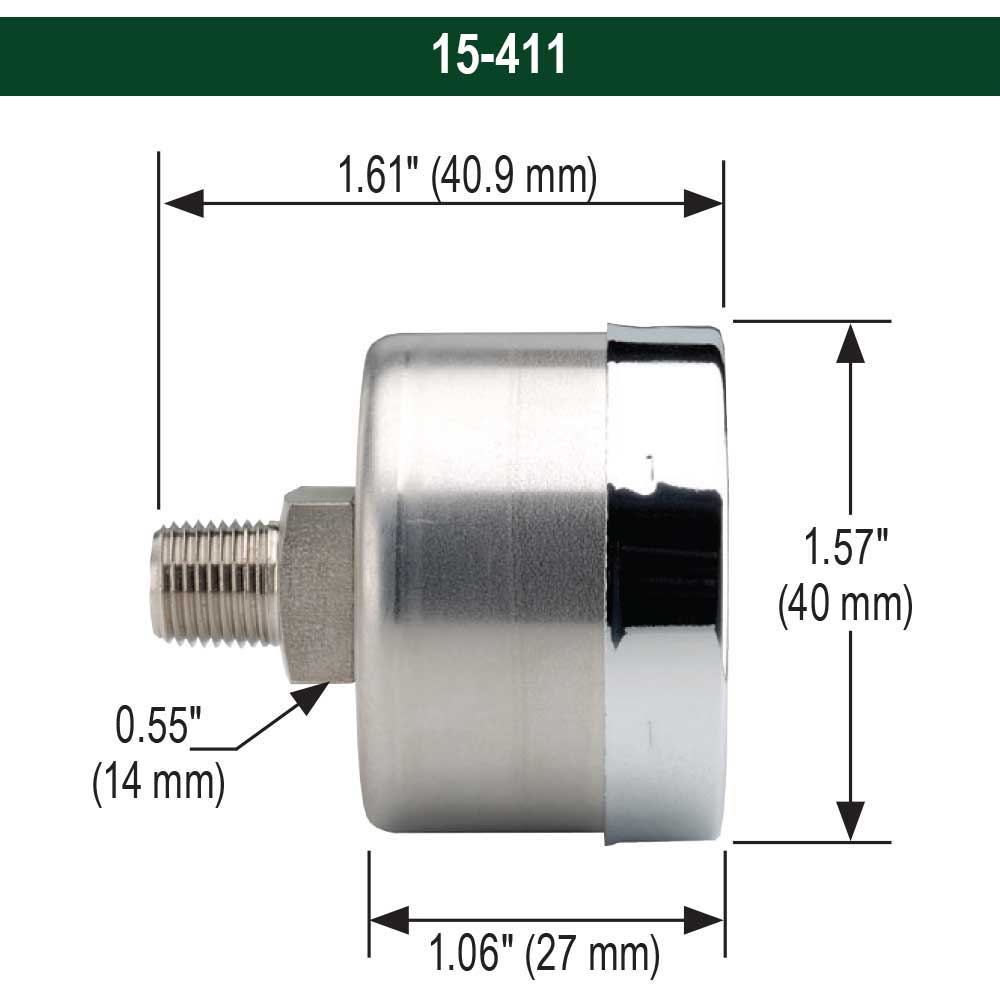 | Dial | Aluminum, White Background with Black Scale. Single Scale psi. Ultraviolet (UV) Resistant. |
